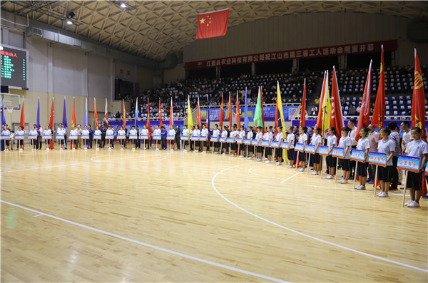 10月12日晚 19时,江山市“红盖头·葛饮料杯”第三届工人运动会开幕式暨2016年中美篮球对抗赛在市体育馆拉开序幕。